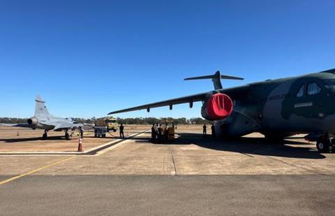Embraer has to date delivered seven of the Brazilian air force’s 22 on-order KC-390s. Aviation analytics company Cirium records the service as having fielded 10 Gripen Es, from a 28-unit order which also includes two-seat F-model examples.