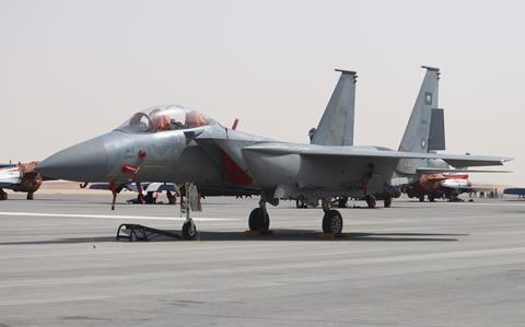 The RSAF has a total of 232 F-15s in active use, according to fleet data from aviation analytics company Cirium. That total includes 80 C/D-model examples which are aged between 34 and 45 years, and 152 S/SA-standard jets, which range from 30 to five years old.