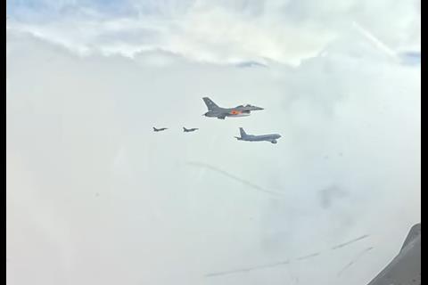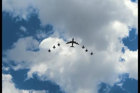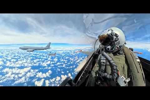 As part of the route, the fighters completed a formation flyover of Argentia’s capital Buenos Aires with a US KC-135, which provided tanking support to the flight during the leg that crossed the South Atlantic.