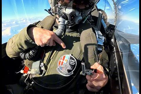 Video footage provided by the FAA shows aviators wearing the Danish flag at the stick of each F-16, while Argentinian officers occupied the back seat of the four F-16Bs.
