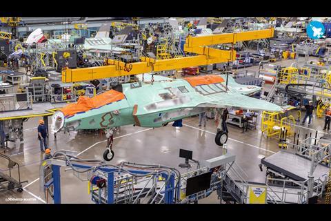 Lockheed revealed the milestone on 23 March, sharing partially censored photos of the incomplete aircraft (number MG-01) being moved to final assembly station of the company’s primary F-35 production line in Fort Worth, Texas via overhead crane.