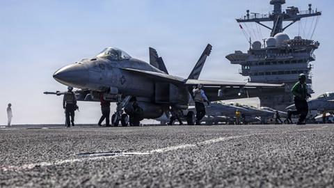 The USAF has also logged dozens of flights by Boeing C-17 strategic transports in and out of the Middle East during recent weeks, along with more than 20 aerial refuellers and five of the service’s critical Boeing E-3 Sentry airborne early warning and control jets – 30% of that entire fleet.