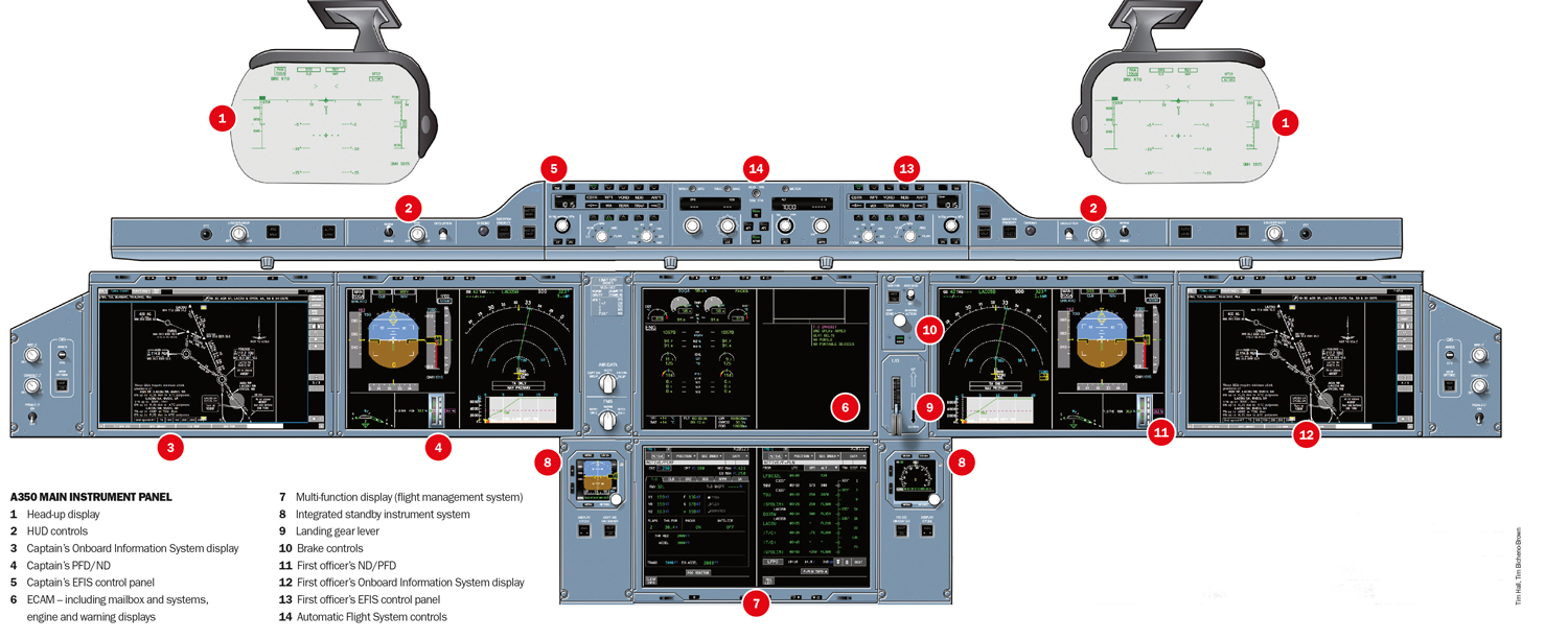 A350 main instrument panel (Click here to enlarge)