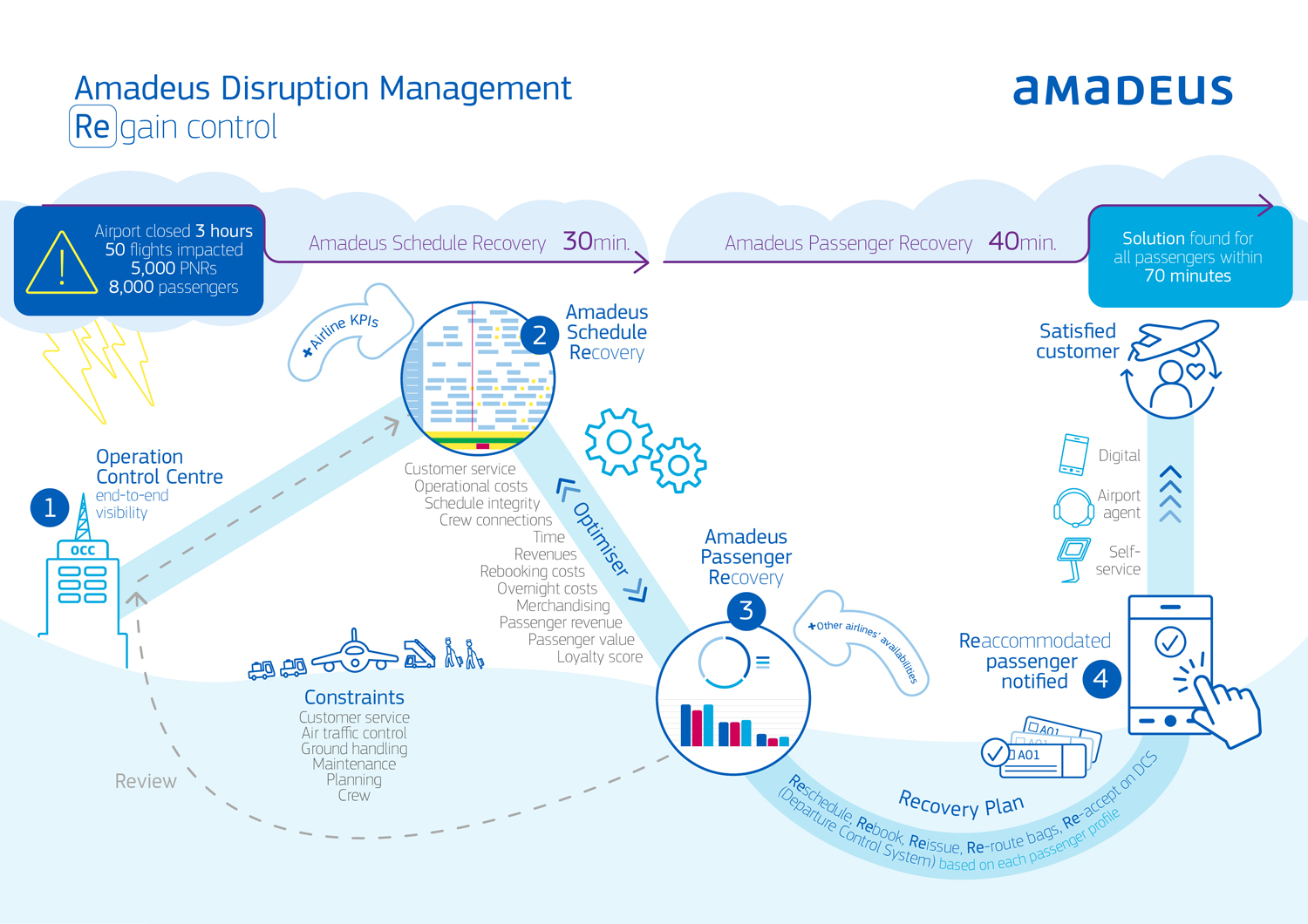 Finally, that recovery plan needs to be clearly communicated to customers via multiple channels e.g. self-service, mobile and airport agents.