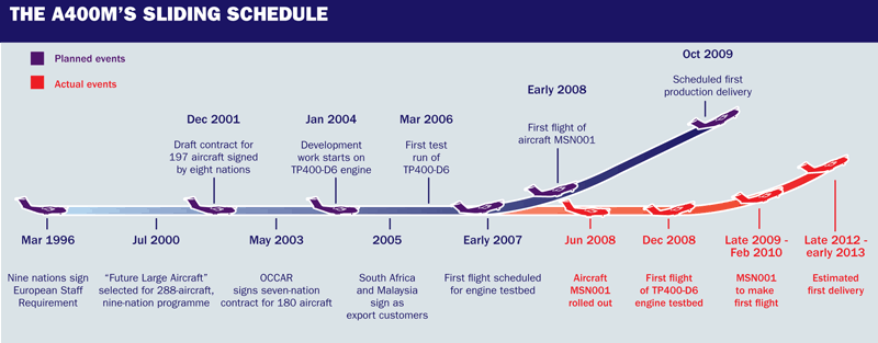 "Historically, Airbus has always performed in the same way, but with the A400M the customer was completely different, and we wanted to incorporate unprecedented technology," says Ureña. "That has been the difficulty that industry is facing." Vital engineering resources were also lost to the commercial demands of the A380 and A350 projects, he adds.